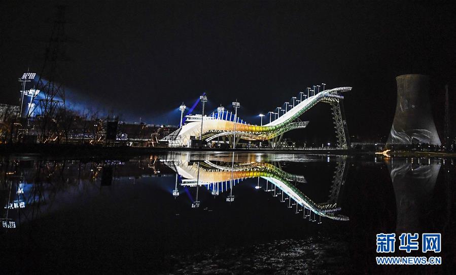这是2019年12月14日拍摄的北京首钢滑雪大跳台夜景。 新华社记者 夏一方/摄