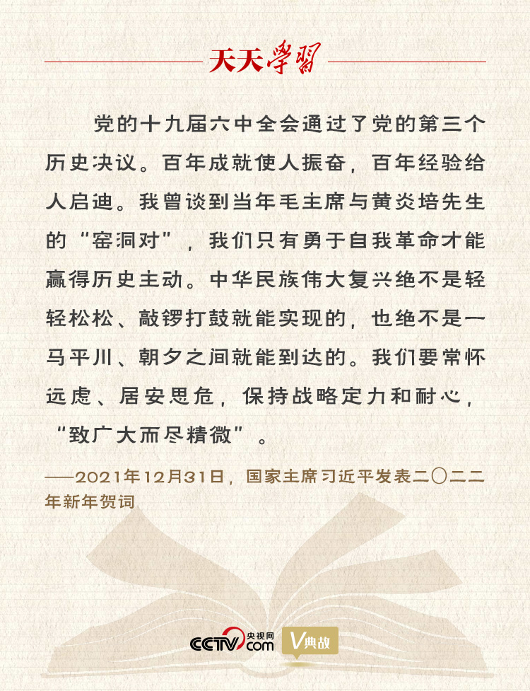 自2013年起,习近平主席已连续九年发表新年贺词,回顾过去一年的辉煌成就,展望未来一年的光明前景。在二〇二二年新年贺词中,习主席借“致广大而尽精微”这句古语,为我们未来干事创业指明了方法路径。