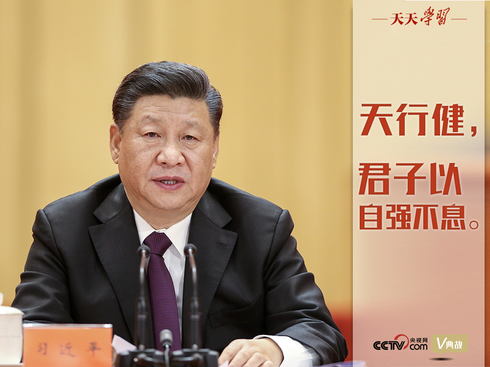 “天行健,君子以自强不息”,出自《周易》中的乾卦《象传》。《象传》是解释卦象立义的。天行:天道。健:运行不息。天之运行,四时交替,昼夜更迭,岁岁年年无有止息,无有差错,君子当效法天道之健,以自强不息。与之相应,坤卦《象传》中有“地势坤,君子以厚德载物”一说。坤卦是地理形势的象征,“地势坤”即地势顺,君子应效法坤地之厚德,容载万物。