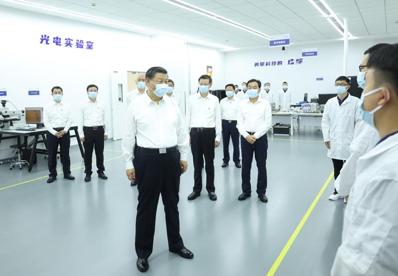 △2023年7月5日,习近平总书记在江苏苏州华兴源创科技股份有限公司,同企业年轻研发人员亲切交流。