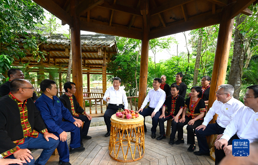 4月10日至13日,中共中央总书记、国家主席、中央军委主席习近平在海南考察。这是11日下午,习近平在五指山市水满乡毛纳村同村民们亲切交流。新华社记者 李学仁 摄