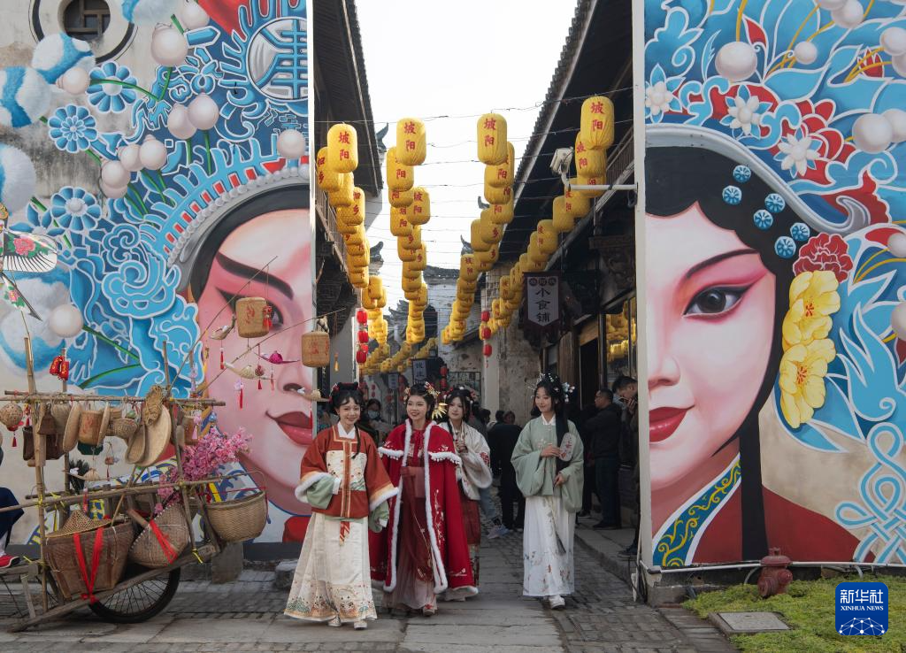 12月30日,在浙江省金华市金东区岭下镇坡阳古街,人们身着传统服饰参加巡游。