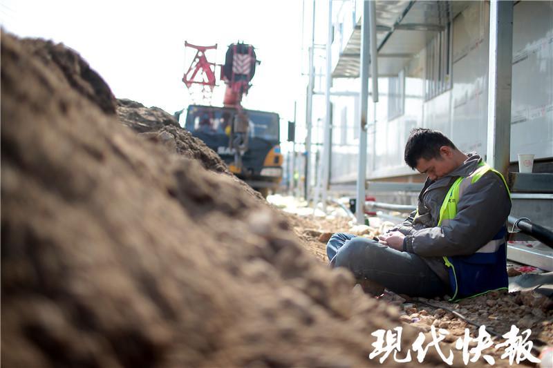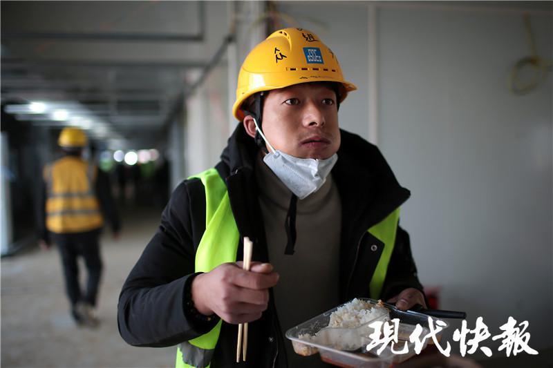 90后河南洛阳小伙李凯凯就是其中一员。中午12点半,他却一点也没要休息的意思。他站着,手捧一份盒饭,匆匆几口扒完了菜,又大口大口往嘴里扒白饭。他一边嚼着饭,一边说,“年初三刚到这里时,混凝土还没凝结,你再看看现在这里是什么样子!” 如今,工地上的板房都已安装就绪,已经能看出医院的雏形。
