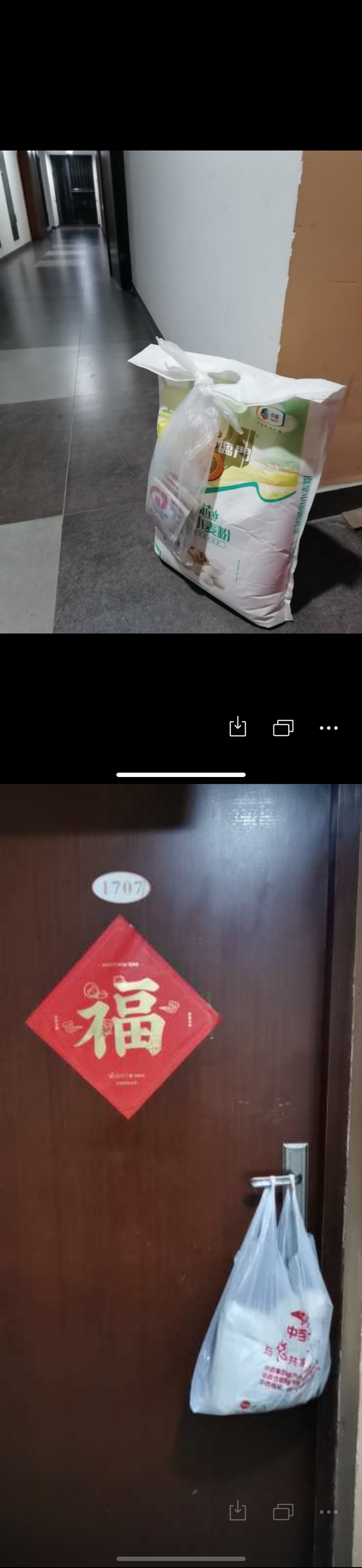 2月25日,家住903的邻居小魏在群里问,“团购面粉买多了,谁家需要?”想着有面粉可以在家自己包包饺子、做做面条,王丽说分她一些。