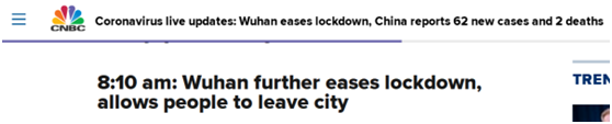 美国消费者新闻与商业频道(CNBC):长达76天的武汉“封城”今天正式结束
