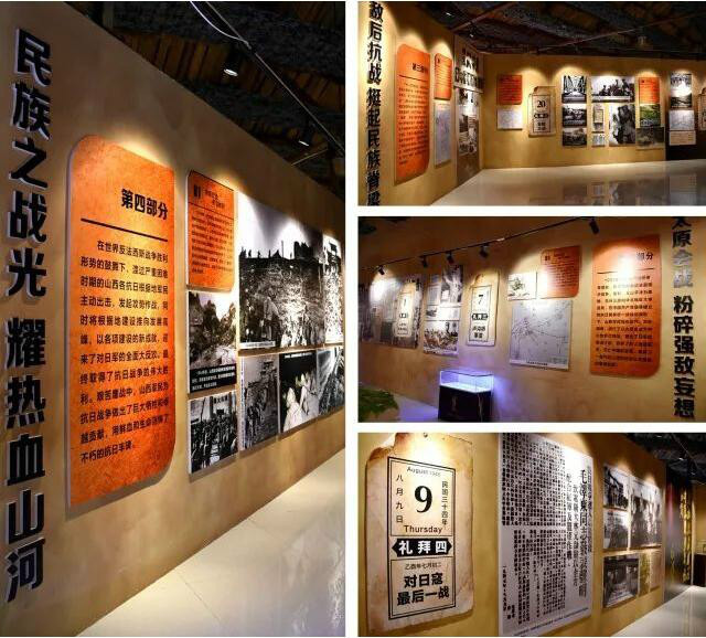 展览以“山西抗战·国家记忆”为主题,分为“统一战线 凝聚抗日力量”、“太原会战 粉碎强敌妄想”、“敌后抗战 挺起民族脊梁”和“民族之战光耀热血山河”四个板块。