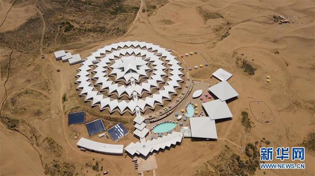 这是响沙湾景区内的莲花酒店(7月14日无人机拍摄)。新华社记者彭源 摄