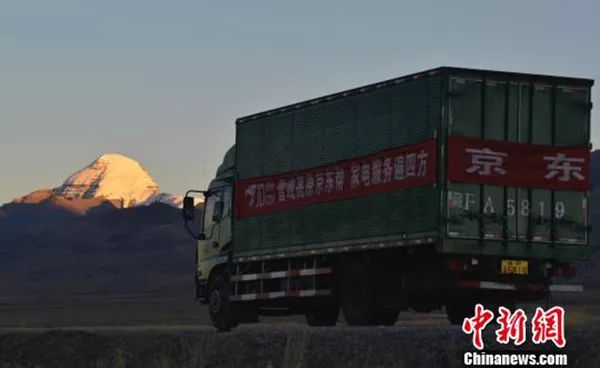 图为京东家电配送车在前往西藏阿里地区的途中。图片来源:中新网