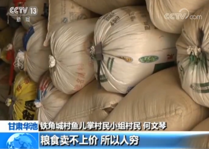 铁角城村鱼儿掌村民小组村民 何文琴:这一袋子都过20年了,你看,袋子都烂了。粮食卖不上价,所以人穷。卖不出去,现在没人要了,纯粹没人打问,没人要了。