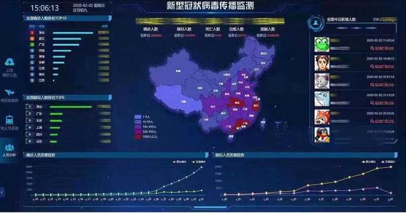 疫情发生后,中国电子控股的奇安信第一时间接到有关部门发出数据分析请求后,利用大数据技术分析辖区内的疫情扩散情况,为精准防控提供数据支撑。奇安信先后派出两批次专业人员,涵盖一线业务人员和产品、售前、研发、数据、测试等多条业务线人员,全力保障相关工作。他们基于大数据智能建模平台,反复研究疫情相关数据的特点,并且开展大量的模型设计和数据分析工作,保障了短时间内将当地辖区内的疫情情况通过大屏幕展示出来,为相关部门研判当期疫情态势、未来发展趋势以及控制传播途径提供了精准的决策支撑。