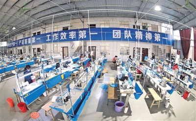 2月11日,广西柳州市融安县长安镇隘面村扶贫微车间工人加班加点生产口罩,每天代加工口罩1万只,满负荷生产可达日产3万只。谭凯兴摄/光明图片