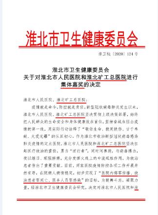 2月23日,华润医疗淮北矿工总医院抗击疫情获淮北市卫生健康委员会嘉奖。