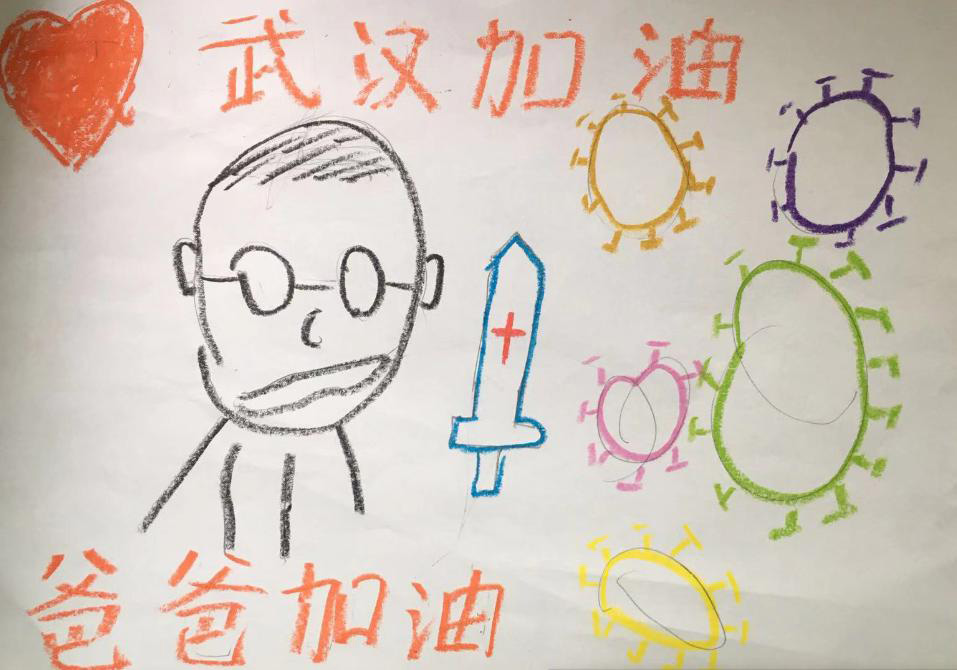 图为三岁的儿子特意为凌传仁画了一幅画。