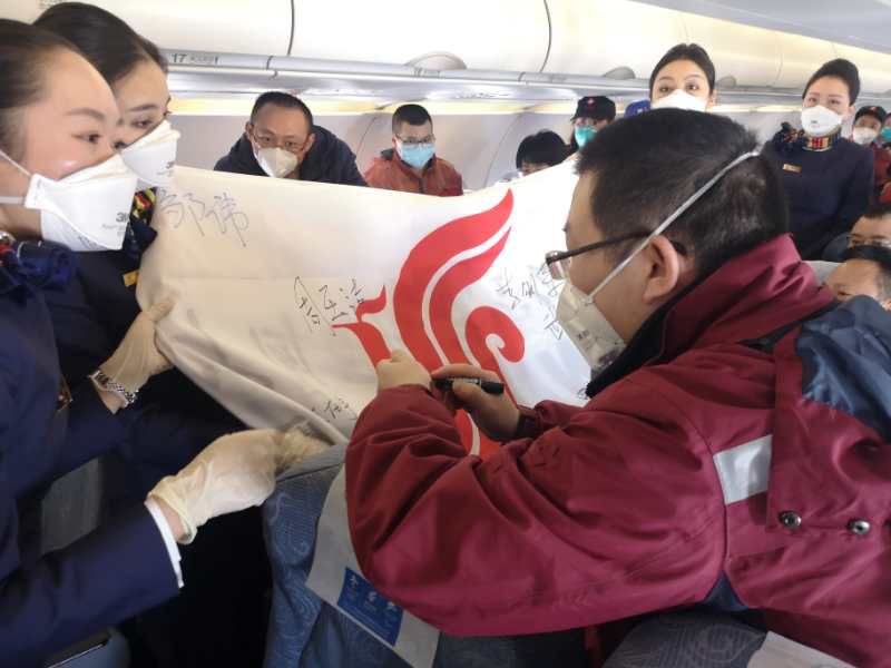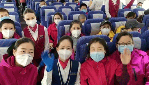 终于等到了接你们回家的时刻!无比敬意,无尚荣光!记得在大年初一,举家团圆的日子,你们却成为第一批勇敢的逆行者。机舱口话别时我们共同约定:武汉加油,平安归来!口罩遮住了你的面庞,但遮不住你坚定的目光,我不知道你的名字,但我知道你是白衣天使。在那个没有硝烟的战场,你们用爱与责任托起生命之重。你们的勇敢前行,激励着我们让每一个‘飞往春天的航班’起降安妥。一次次驰援包机就是希望的继续,一次次安全飞行就是胜利的开始。在暂时分别的日日夜夜,国航一直在牵挂着你们,期盼着你们的归来。今天我们终于等来你们平安回家。万米高空,春花盛开。在今天这个令人难忘的时刻,让我们一起高喊:武汉加油,中国雄起!