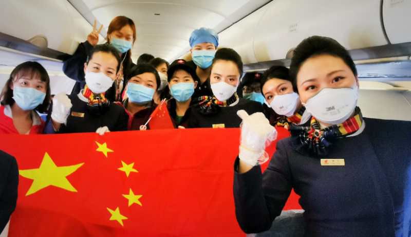 3月17日,国航派出2架包机飞赴武汉,护送白衣天使回家。CA044航班、CA042航班先后于北京时间17时10分和17时49分安抵成都。