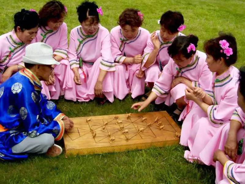 围鹿棋,是达斡尔族中普遍开展的体育活动,具有浓郁的民族特色。图为哈拉新村村民在下围鹿棋。齐齐哈尔市委宣传部供图