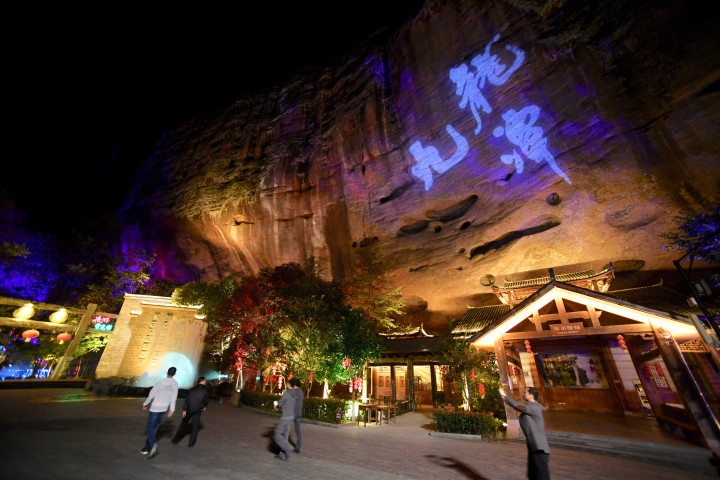 游客前往福建省泰宁县九龙潭景区体验夜游九龙潭旅游项目(11月19日摄)。 新华社记者 姜克红 摄