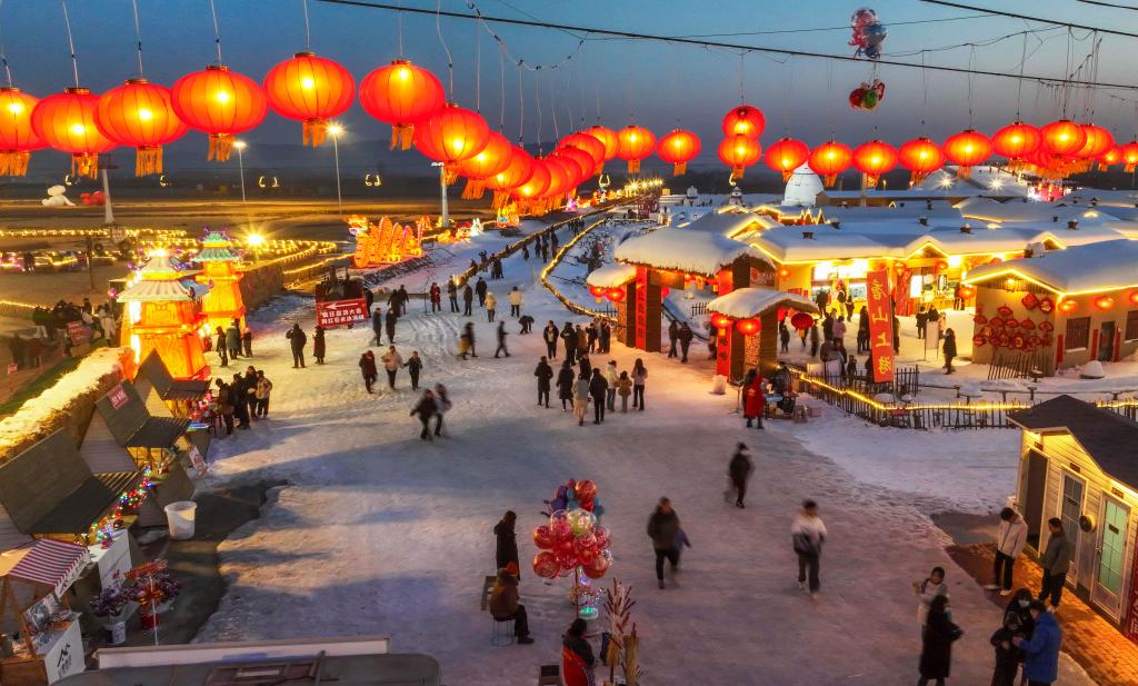 2024年2月7日,游客在河北省遵化市一雪乡景区游玩(无人机照片)。新华社发(刘满仓摄)