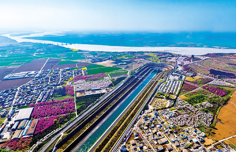 南水北调穿黄工程位于黄河南岸的河南郑州荥阳市和北岸的焦作温县境内,是南水北调中线总干渠穿越黄河的关键性工程,主要任务是安全有效地将中线调水从黄河南岸输送到黄河北岸。图为2024年3月27日拍摄的南水北调穿黄工程。 南水北调集团供图