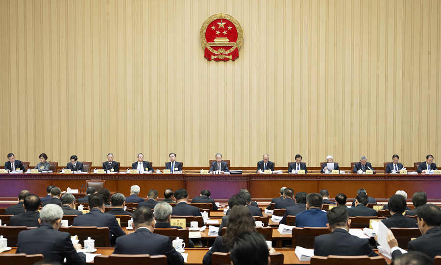 12月21日上午,十四届全国人大常委会第十三次会议在北京人民大会堂举行第一次全体会议。赵乐际委员长主持。新华社记者 李涛 摄