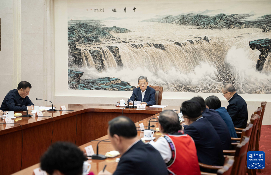 12月24日下午,中共中央政治局常委、全国人大常委会委员长赵乐际同列席十四届全国人大常委会第十三次会议的全国人大代表座谈交流。新华社记者 李涛 摄