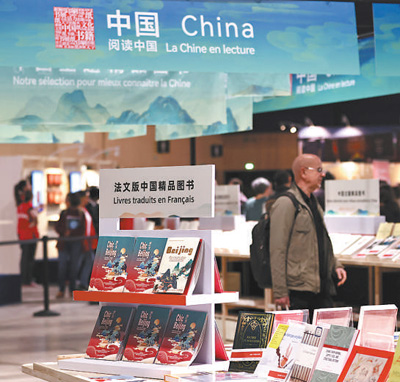 4月12日,2024巴黎书展中国图书展区一角。 新华社记者 高 静摄