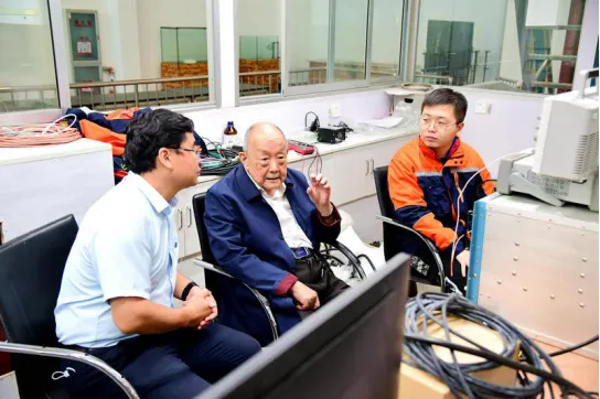 图为杨士莪(中)为学生讲解水声实验(资料照片)。 新华社发