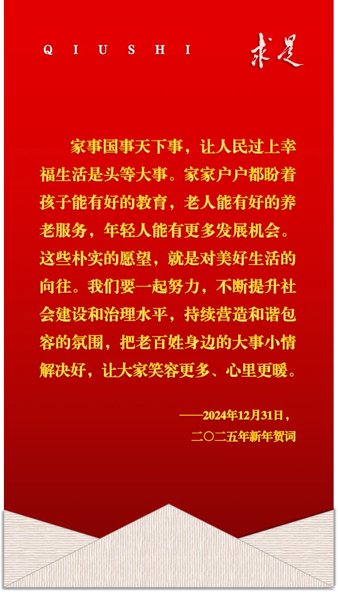“家事国事天下事,让人民过上幸福生活是头等大事。”在发表二〇二五年新年贺词时,习近平总书记这样说道。
