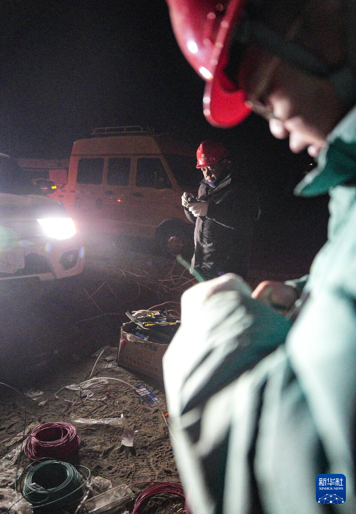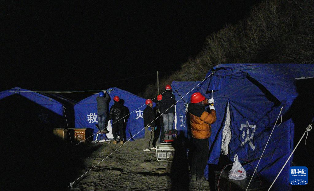 1月7日,在定日县长所乡集中安置点,工作人员在保障电力供应。新华社记者 晋美多吉 摄