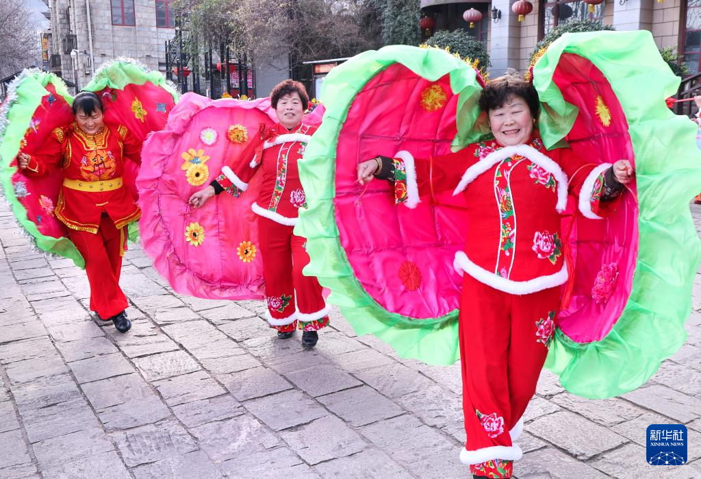 1月22日,村民在河北省石家庄市元氏县北岩村进行民俗表演。
