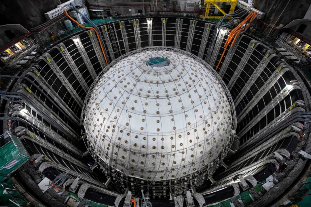 党的十八大以来,党中央深入推动实施创新驱动发展战略,不断深化科技体制改革,有力推进科技自立自强,我国科技事业取得历史性成就、发生历史性变革。2024年11月20日,我国大科学装置——广东省江门中微子实验探测器主体建成。图为9月27日拍摄的建设中的江门中微子实验探测器。新华社发 刘悦湘/摄