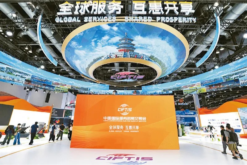 开放是中国式现代化的鲜明标识。以“全球服务 互惠共享”为主题的2024年中国国际服务贸易交易会于9月12日至16日在北京国家会议中心和首钢园区举办。图为2024年9月11日拍摄的2024年服贸会国家会议中心会场内景。新华社记者 鞠焕宗/摄