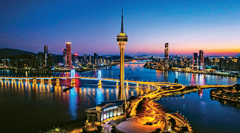 2021年9月17日,位于广东省珠海市的横琴粤澳深度合作区管理机构正式揭牌,合作区建设从此进入了全面实施、加快推进的新阶段。经过3年多的磨合运作,合作区体制机制运行基本顺畅、渐入佳境。图为2024年7月5日拍摄的澳门旅游塔和横琴、珠海景色(无人机照片)。新华社发 张金加/摄
