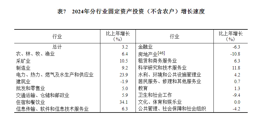 [41]由于投资统计制度方法改革、第五次全国经济普查数据修订、统计执法检查等因素,2024年固定资产投资相关指标增速按可比口径计算。