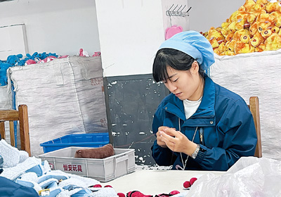 初春,温暖的阳光洒向秦巴大地。缝纫机的“哒哒”声在车间里此起彼伏,位于陕西省安康市恒口示范区的陕西省安贝斯玩具科创有限公司里,五颜六色的布片经过绣花、车缝、充棉、手缝等工序,变成一只只憨态可掬的玩具小熊。