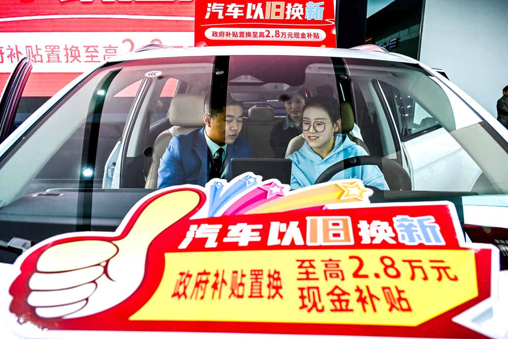 提振消费是扩大内需的重要举措。随着汽车“以旧换新”补贴政策实施,汽车消费市场火热,成为拉动消费增长的重要引擎,其中新能源汽车成为消费亮点,众多车企推出优惠补贴叠加国家补贴政策,优惠力度进一步加大。图为2024年10月23日,市民在江西省南昌市一4S店内现场咨询。人民图片 鲍赣生/摄