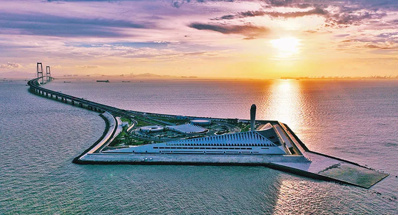 2024年6月30日,历时7年建设的国家重大工程深中通道正式通车运营。深中通道由中交集团、中国中铁和保利集团等中央企业,及镇江蓝舶科技、德阳天元重工等多家民营企业共同参与建设,是当前世界上综合建设难度最高的跨海集群工程之一。图为2024年6月27日拍摄的深中通道。中交集团供图