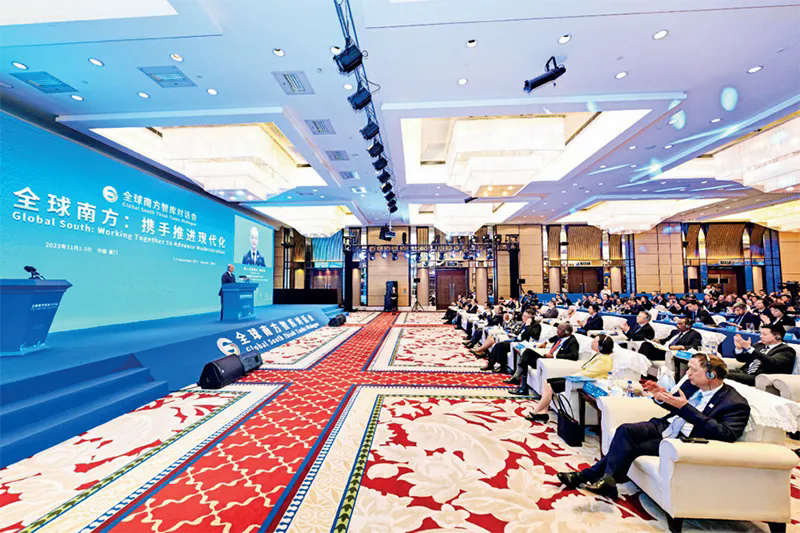 2023年11月2日,以“全球南方:携手推进现代化”为主题的全球南方智库对话会在福建省厦门市开幕。来自巴西、俄罗斯、印度、南非等50多个新兴市场国家和发展中国家的智库学者、政党代表、企业界人士等300余人与会。图为与会代表出席全球南方智库对话会开幕式。中联部供图