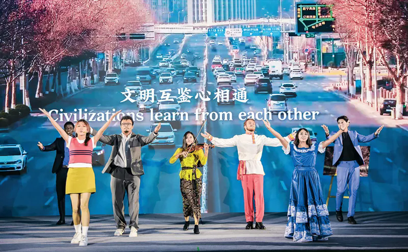 2024年10月27日,以“读懂中华文明,携手促进世界现代化”为主题的第二届世界汉学家大会在福建省南平市开幕。会议由中国国际交流协会和福建省人民政府共同举办,来自60个国家的200余名中外代表参加。图为外国青年汉学家参加开幕式“融通中外文明的使者”主题展示。中联部供图