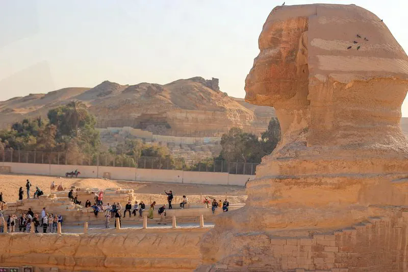 图为2025年1月2日,游客在埃及吉萨参观狮身人面像。新华社发 艾哈迈德·戈马/摄