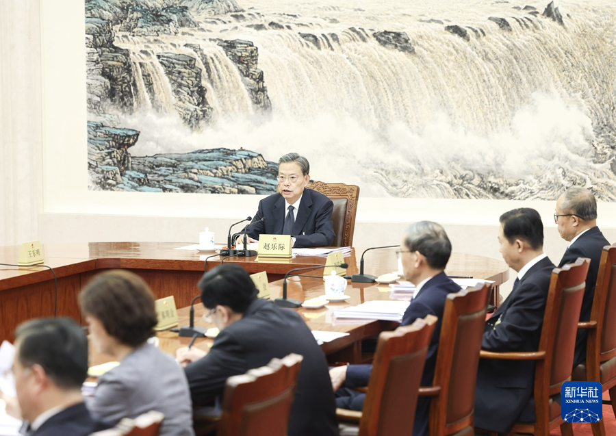4月28日下午,十四届全国人大常委会第四十三次委员长会议在北京人民大会堂举行。赵乐际委员长主持。新华社记者 庞兴雷 摄