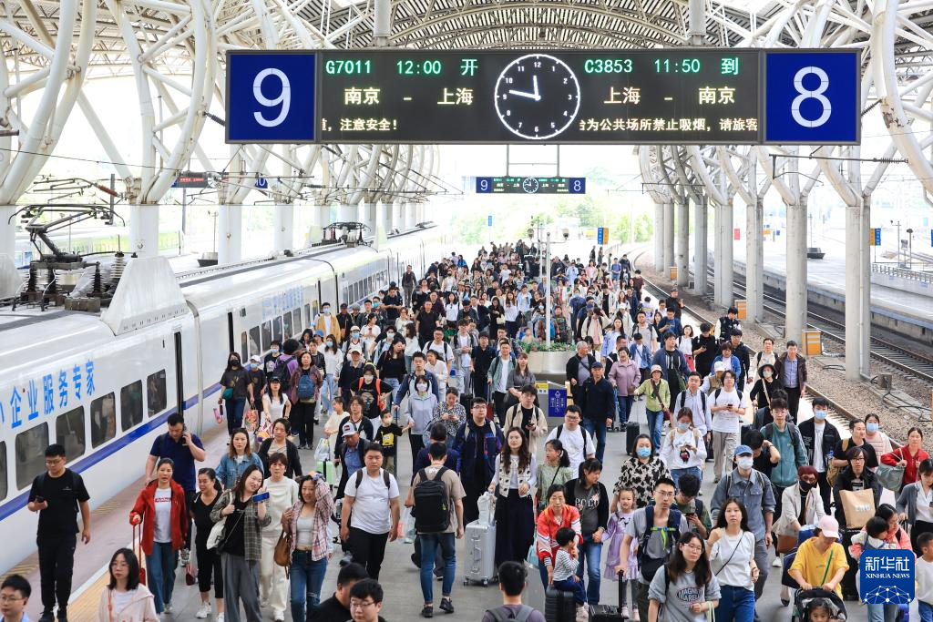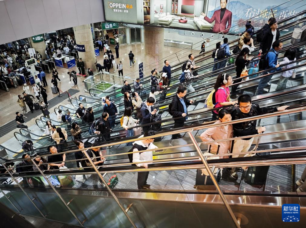 4月30日,旅客在南京火车站乘车出行。新华社发(苏阳 摄)