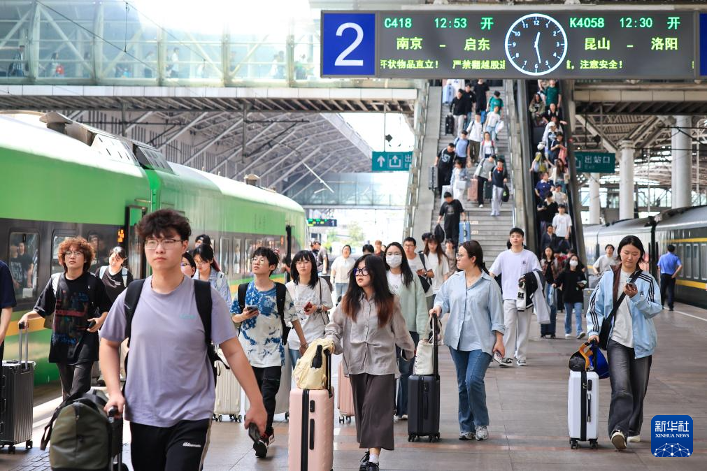 4月30日,旅客在南京火车站下车出站。新华社发(苏阳 摄)