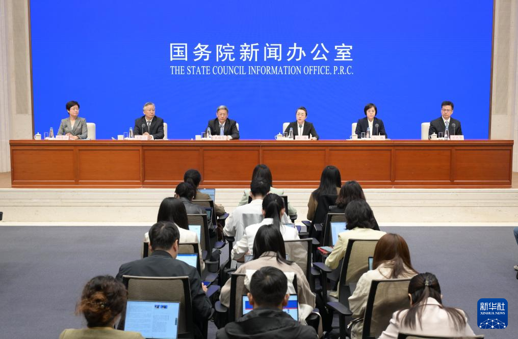 5月8日,国务院新闻办公室在北京举行新闻发布会,全国人大常委会法工委副主任王瑞贺、国家发展改革委副主任郑备、司法部副部长王振江、金融监督管理总局副局长丛林、全国工商联副主席方光华介绍《中华人民共和国民营经济促进法》有关情况,并答记者问。新华社记者 李贺 摄