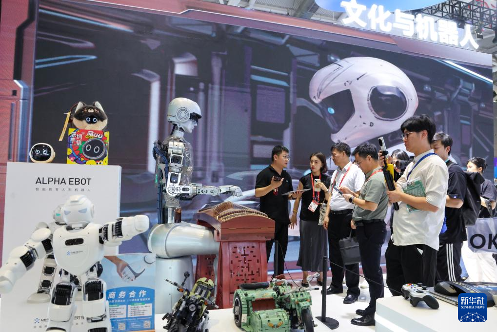 5月22日,观众在文博会辽宁展台观看机器人表演。