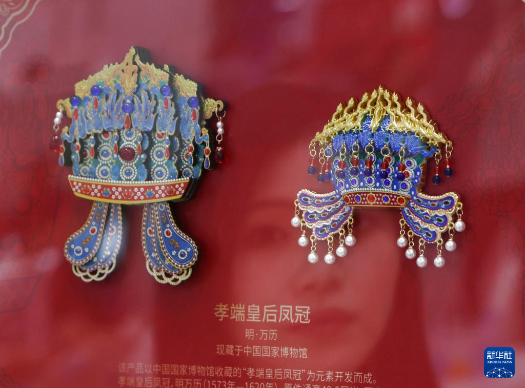 这是5月22日在文博会中国国家博物馆展区拍摄的“孝端皇后凤冠”冰箱贴。
