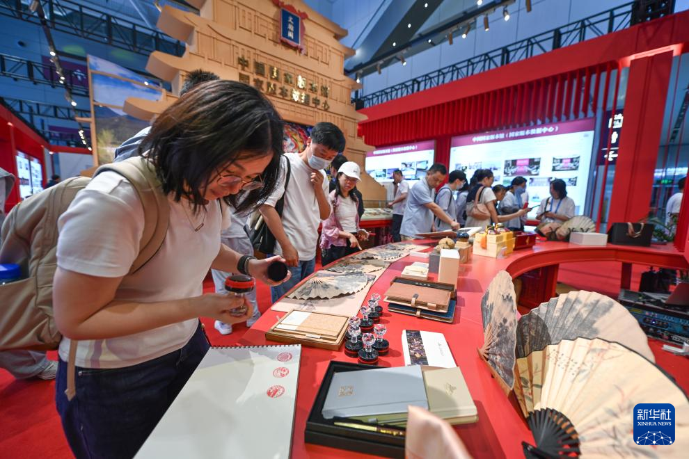 5月22日,观众在文博会中国国家版本馆展台集章。