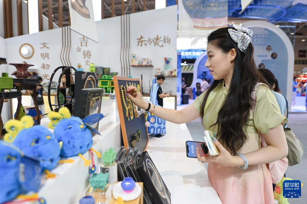 5月22日,观众在文博会中国国家版本馆展台参观。