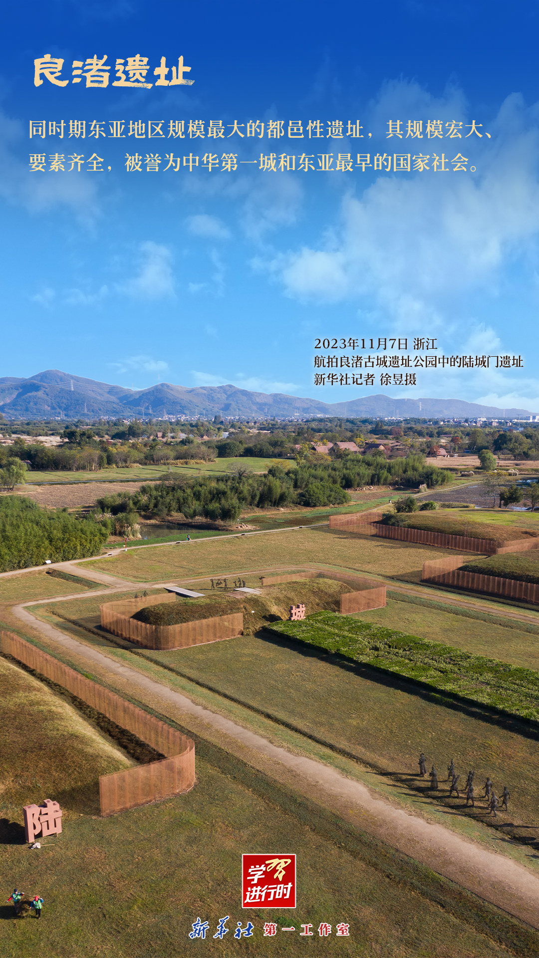 良渚遗址是中华五千年文明史的实证,是世界文明的瑰宝。在悠远的历史长河中,中华文明以独树一帜的创新创造、一脉相承的坚持坚守,树立起一座座文明高峰。