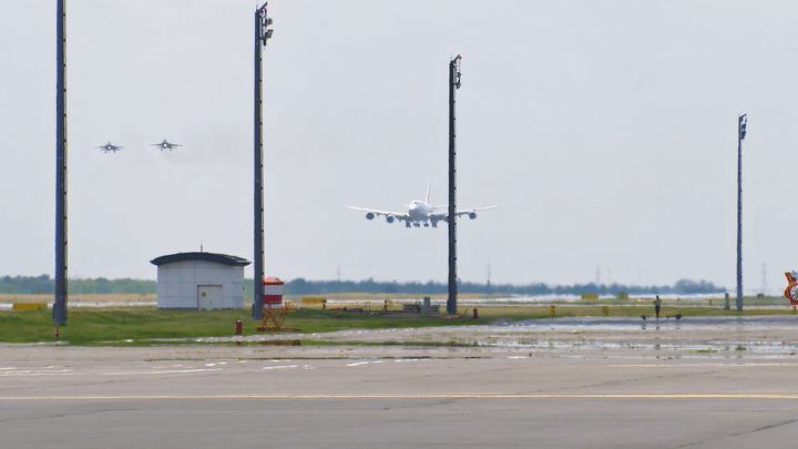 习近平乘坐的专机进入哈萨克斯坦领空后,哈萨克斯坦空军战机升空护航。